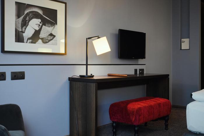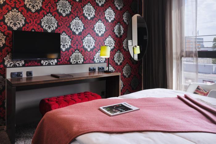 Air conditioning and central heating ensure that rooms maintain comfortable temperatures. A balcony is included as a standard feature in some rooms. Children's beds can be requested for younger guests. There is also a safe and, for a fee, a minibar. Additional features include a refrigerator, a mini fridge and a tea/coffee station. An ironing set is provided for guests' convenience. Other features include a telephone, a TV, a radio and WiFi. The daily newspaper is laid out for guests in the the rooms. Bathrooms are equipped with a shower and a hairdryer. The hotel has family rooms and 110 non-smoking rooms.