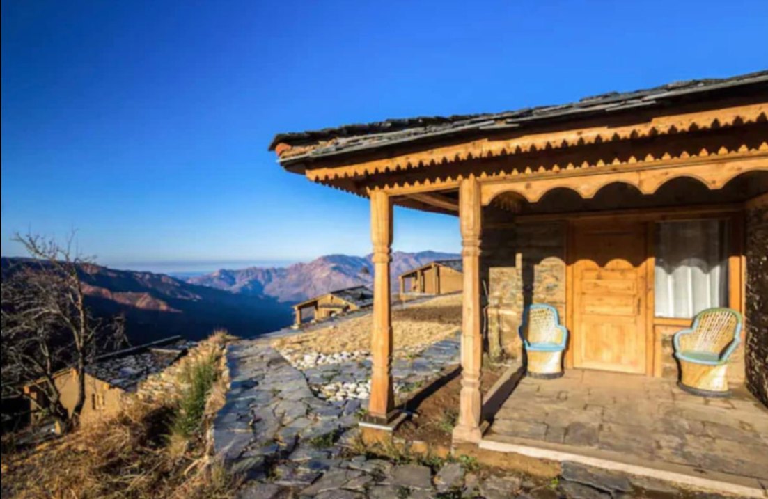 The Goat Village is a traditionally curated and crafted property in the rolling hills of Garhwal. At around 7,700 ft, the cottages are cosy and beautifully done up by the local artisans. The site is the midpoint for the popular trek to Nagtibba.