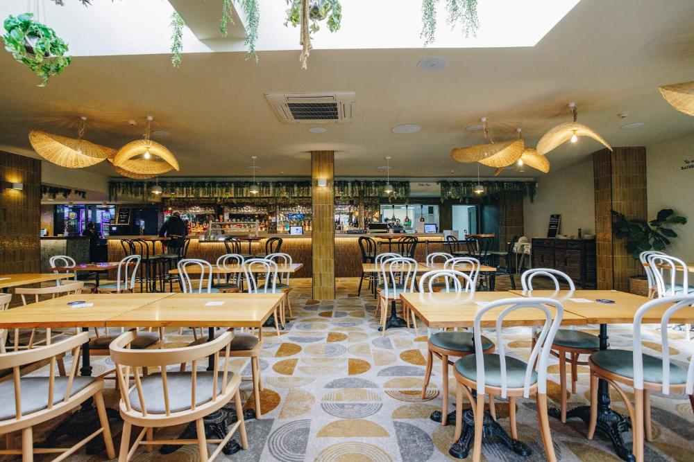 The dining area includes a restaurant and a bar.