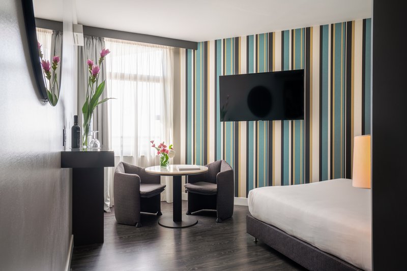 Rooms are equipped with air conditioning and central heating. A balcony is among the standard features of some rooms. Rooms have a double bed or a king-size bed. A safe and a minibar are also available. Additional features include a refrigerator and a mini fridge. A direct dial telephone, a television with satellite/cable channels, a radio and WiFi are provided as well. Bathrooms are equipped with a shower and a bathtub, as well as a hairdryer. The hotel has family rooms and non-smoking rooms.
