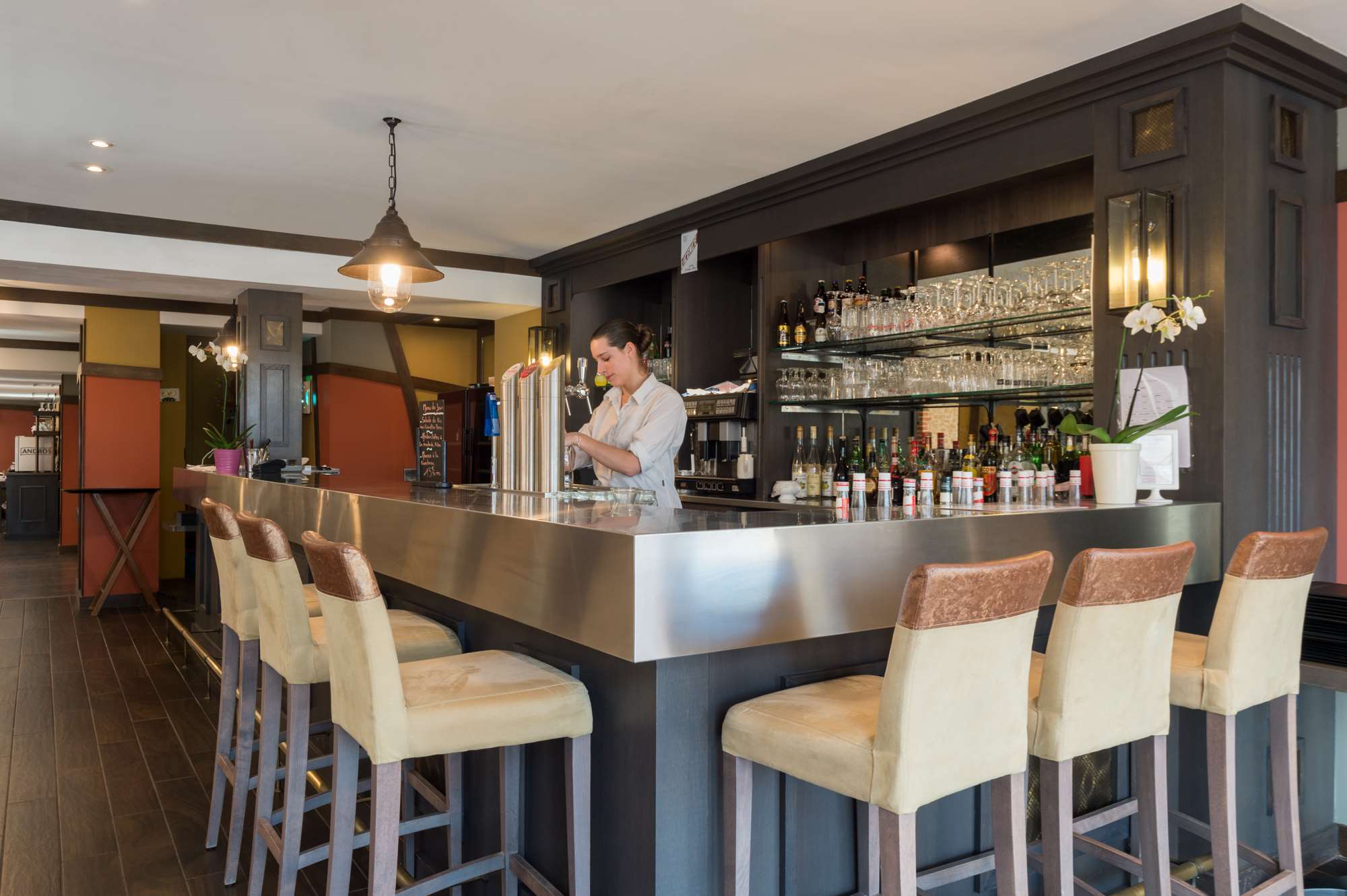 The hotel includes a restaurant and a bar.