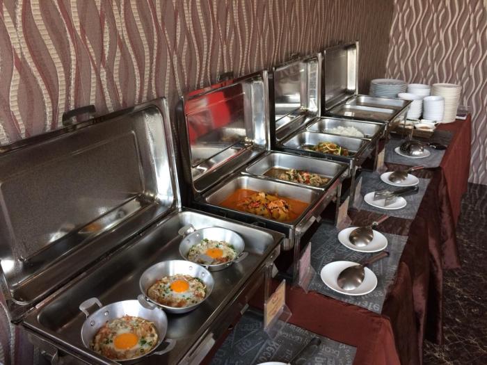 A generous breakfast buffet is prepared every morning.