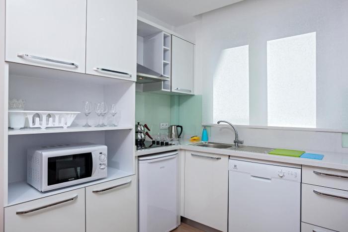 Air conditioning and central heating ensure that rooms maintain comfortable temperatures. Some rooms have a balcony, which gives guests additional space for rest and relaxation. Rooms include a double bed. Valuables can be securely stored in a safe. Additional features include a refrigerator, a cooktop, a microwave and a tea/coffee station. There is also a washing machine and an ironing set. Internet access, a telephone, a TV and a radio provide all the essentials for a comfortable vacation. Bathrooms are equipped with a shower and a bathtub, as well as a hairdryer. Family rooms are available for parents with children.