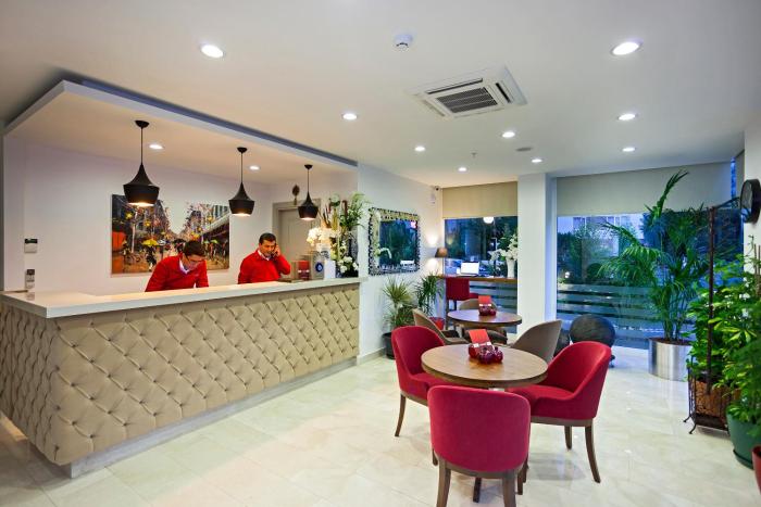 This apartment hotel is located in Antalya, about a quarter mile from the beach.