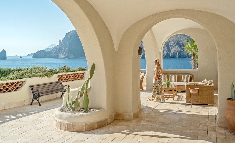 This resort lies in a quiet area in Vulcano Island, about a quarter mile from the sandy beach.