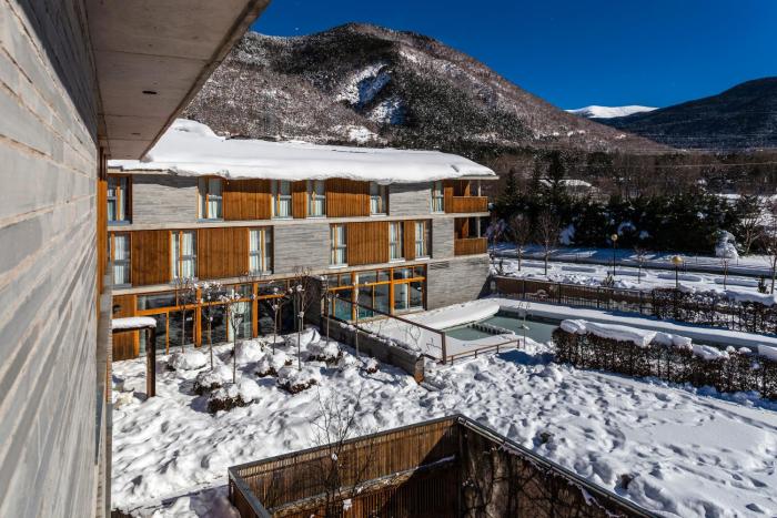 I spent a week here as a base for hiking in the Spanish Pyrenees. The hotel makes a great first impression. Really well designed in stone and wood, with a central garden and po area that is really...