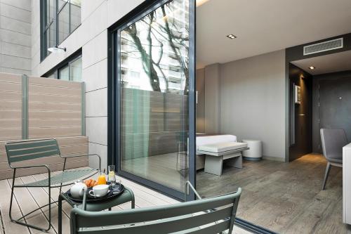 This hotel warmly welcomes guests in Barcelona.