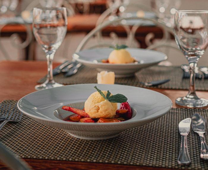 Various dining options are available, including a restaurant with air conditioning, a dining room and a bar. Catering options include a bed and breakfast package and half board.